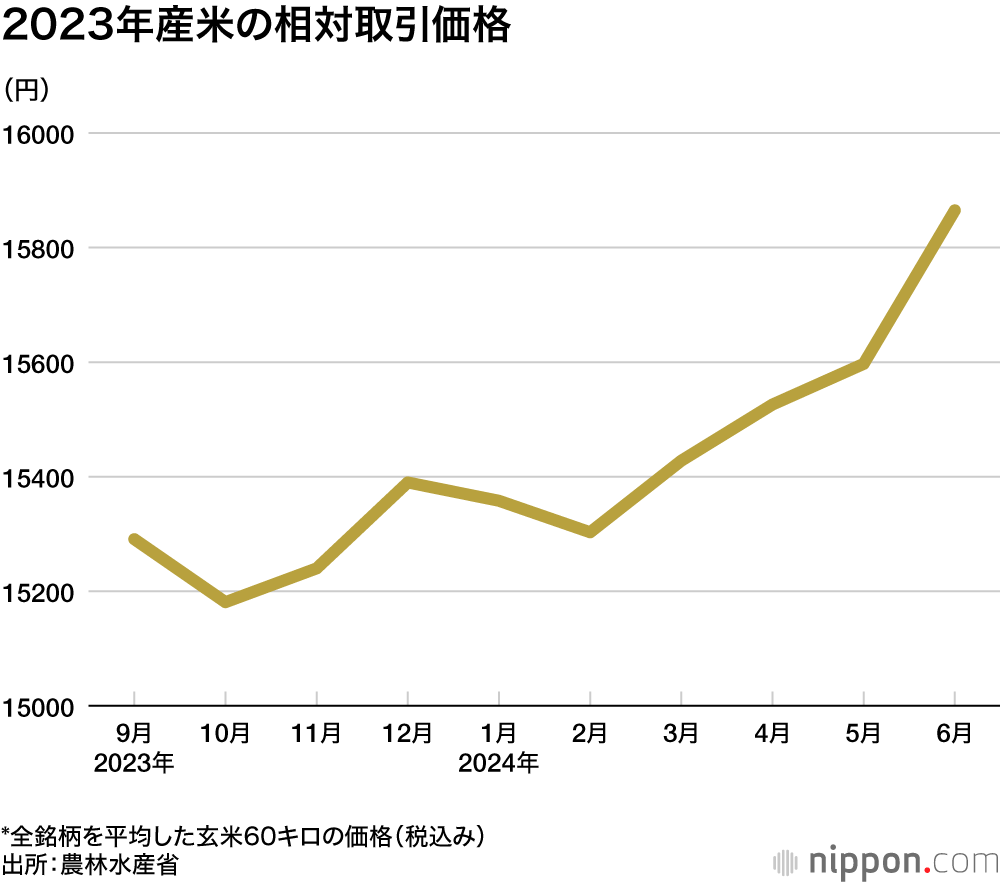 消費者にとって悪いニュースはさらに続く。農水省は11月19日、コメの出荷団体と卸売業者が売買する際の価格を示す「相対取引価格」を発表した。10月の全銘柄平均は玄米60キロあたり2万3820円で、これは近年稀に見る高値なのだという。