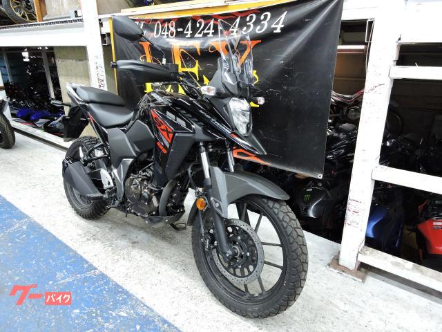 SUZUKI V-STROM SX全長:2,180mm全幅:880mm全高:1,355mm軸間距離:1,440mm最低地上高:205mmシート高:835mm車重:167kgエンジン形式:油冷4サイクルSOHC4バルブ単気筒ボア×ストローク:76.0mm×54.9mm燃料供給方式:FI排気量:249cc圧縮比:10.7:1最高出力:19.5Kw(26.5PS)/9,300rpm最大トルク:22.2Nm(2.26kgf・m)/7,300rpm燃料タンク容量:12Lブレーキ:前ディスク/後ディスク(ABS)タイヤサイズ:前100/90-19 後140/70-17ヘッドライト:LEDテールランプ:LEDカラー: イエロー、オレンジ、ブラック